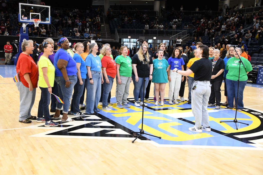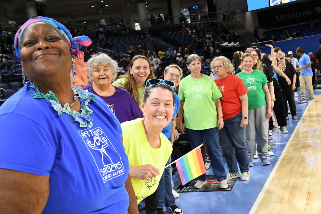 We had the honor and pleasure of singing the National Anthem at the WNBA Chicago Sky basketball game Pride Night on Thursday June 27. Here are some photos and videos of our performance. SSA Performance directed by member Abby Lag. Photos courtesy of the Chicago Sky. Video courtesy of member Jen Byrne.
